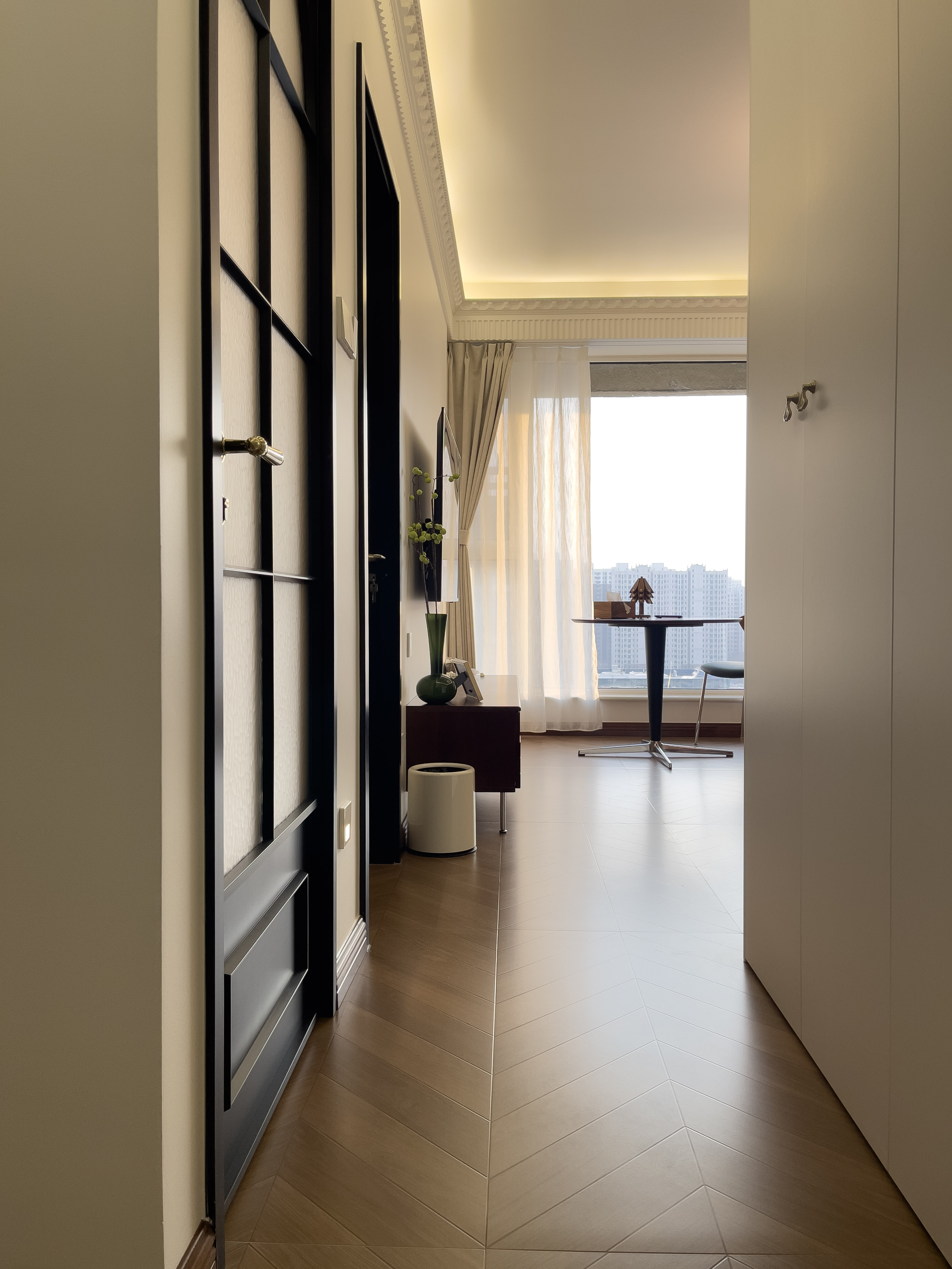 业主是一位独居的优雅女性,她希望将这套高层公寓改造成充满浪漫与优雅的法式空间。我们用柔和的色彩、精致的线条和复古的家具,为她打造了一座"空中城堡"。