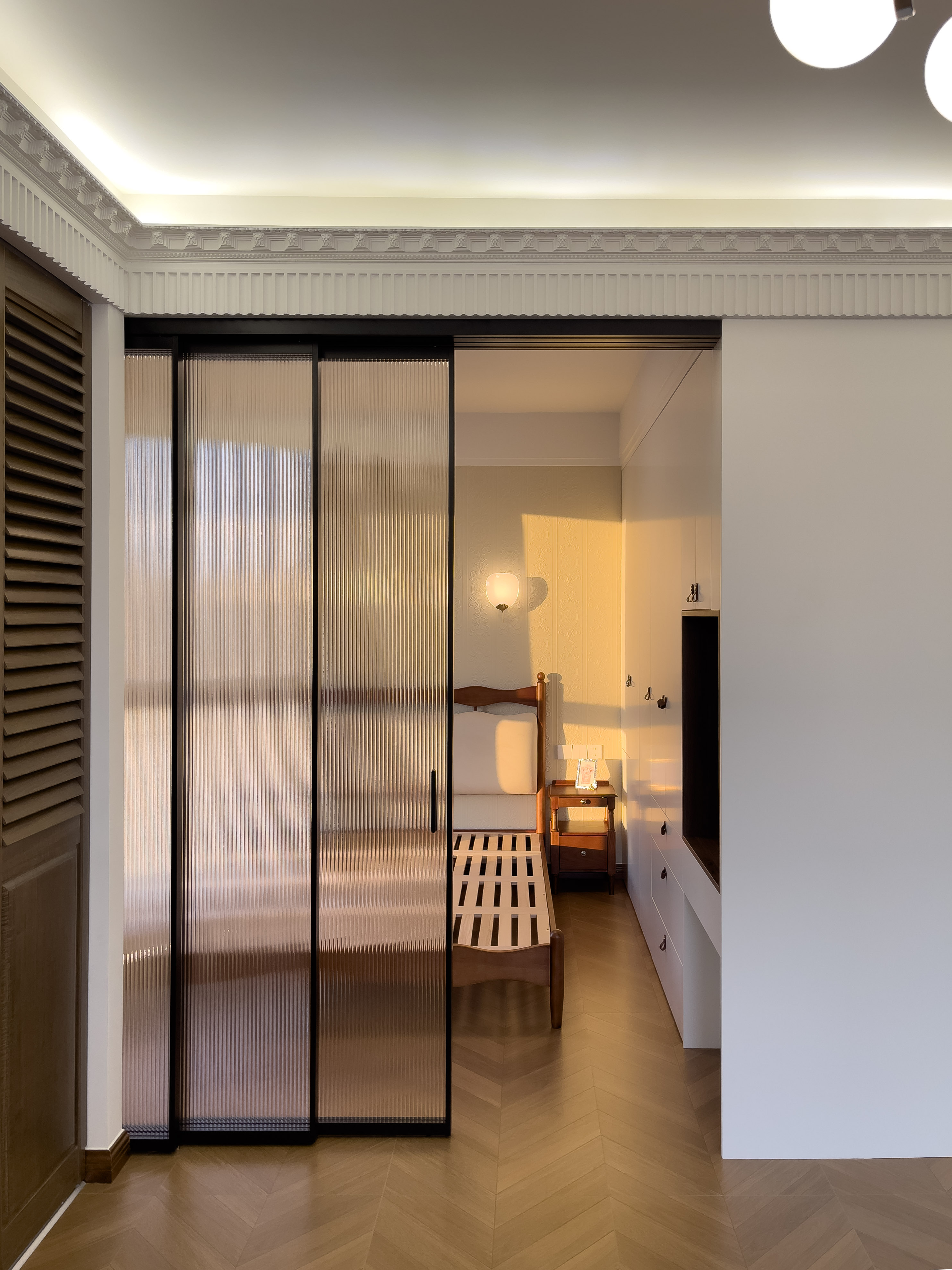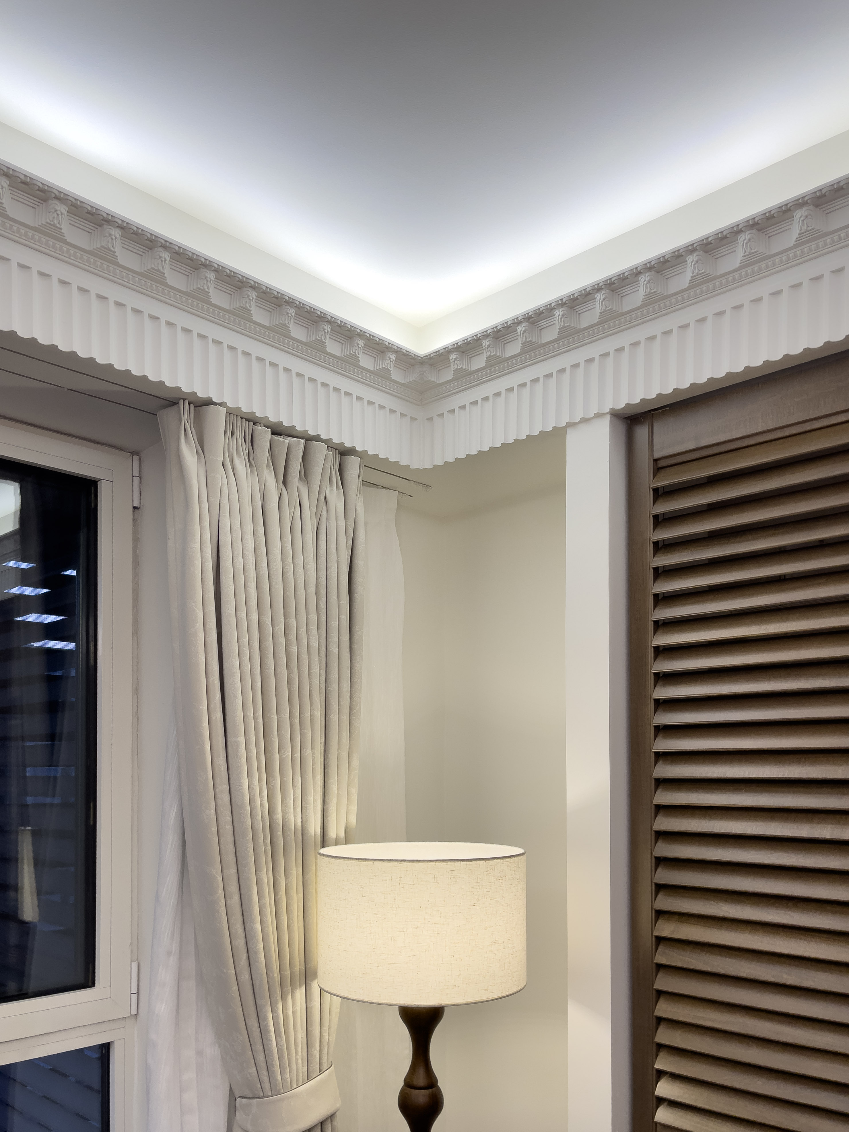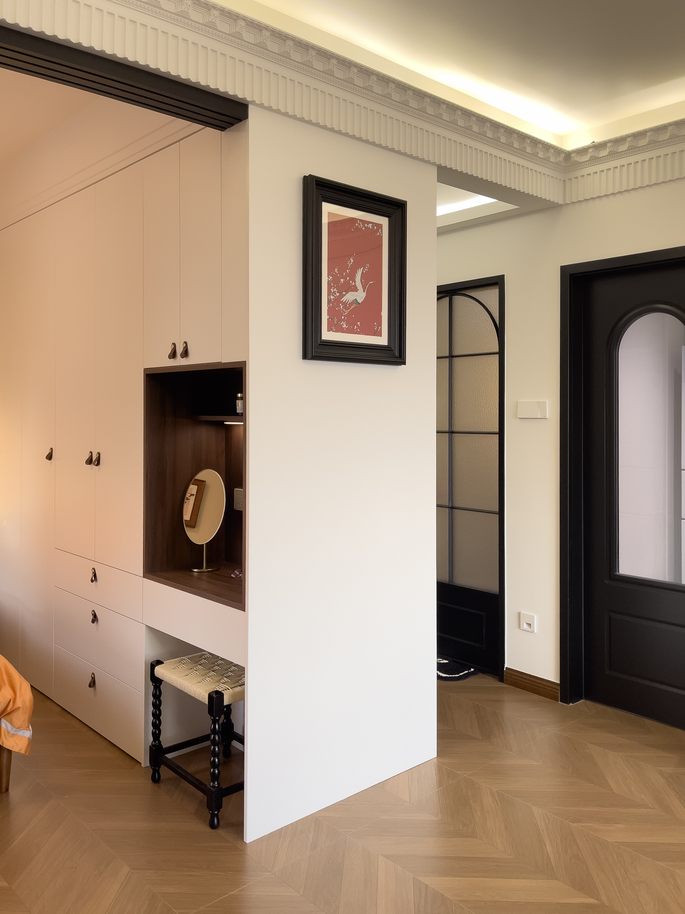 • 墙面:奶油色乳胶漆+石膏线条装饰