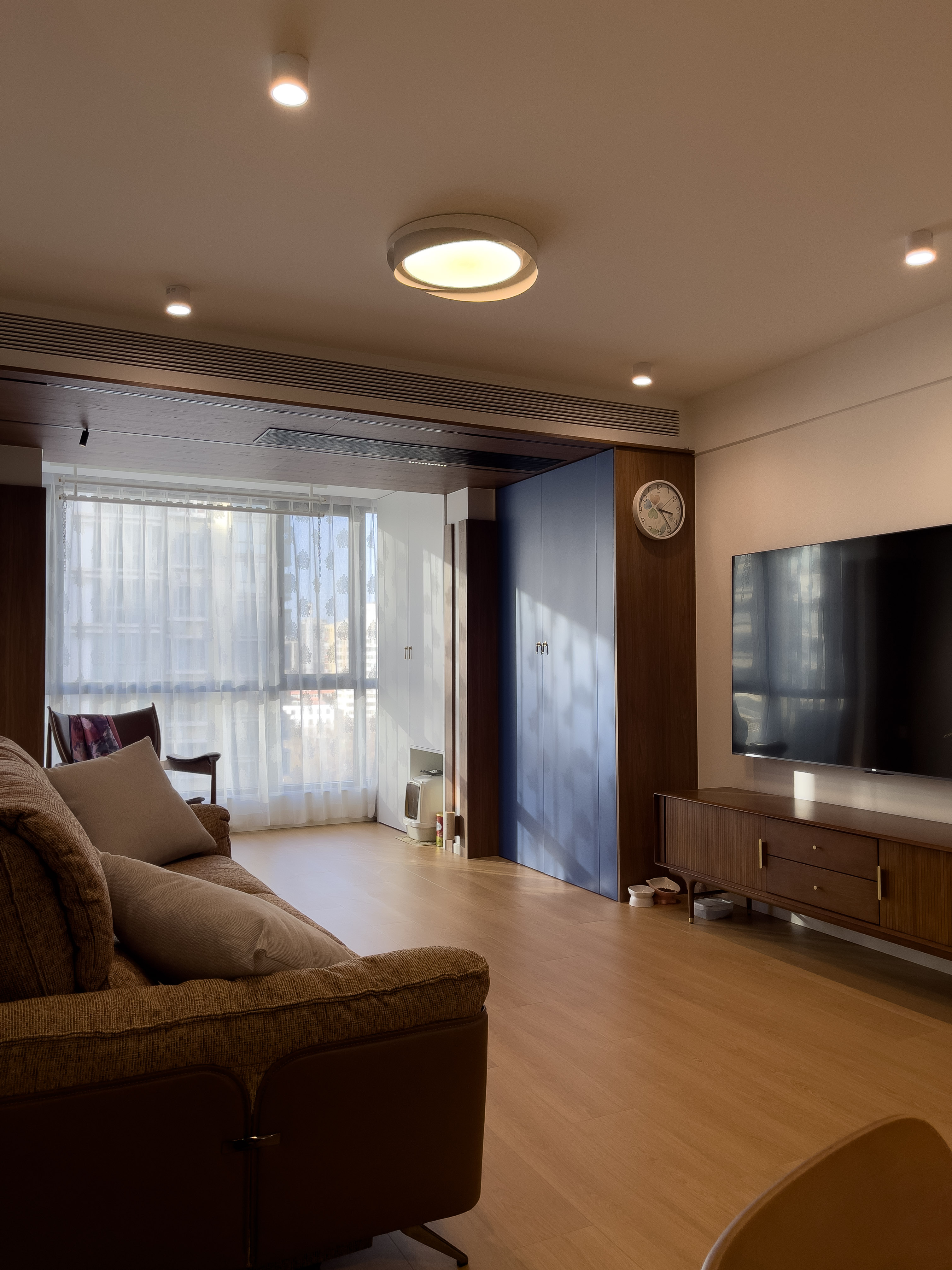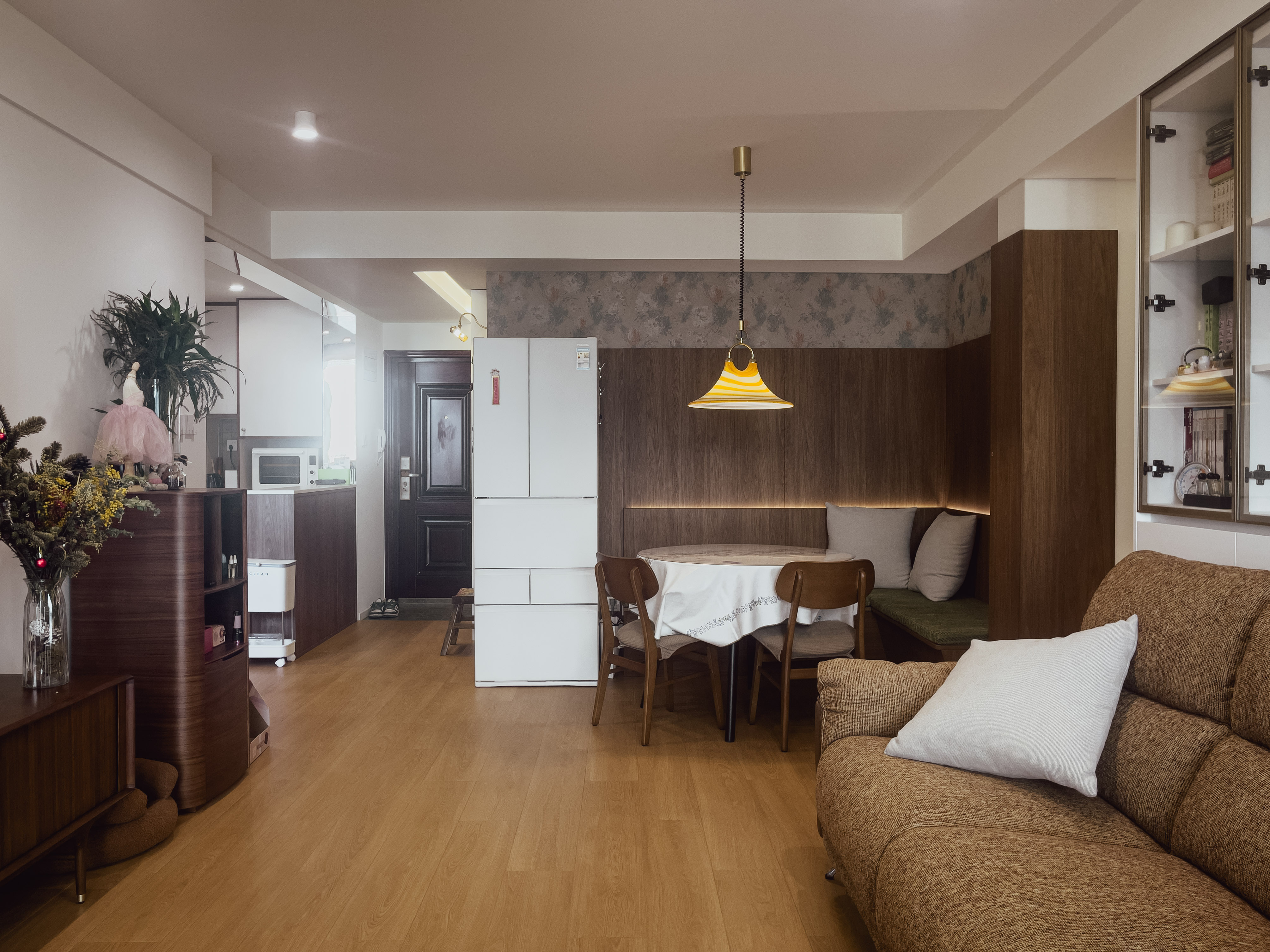 • 色彩:暖木色+米白色,提亮空间基调