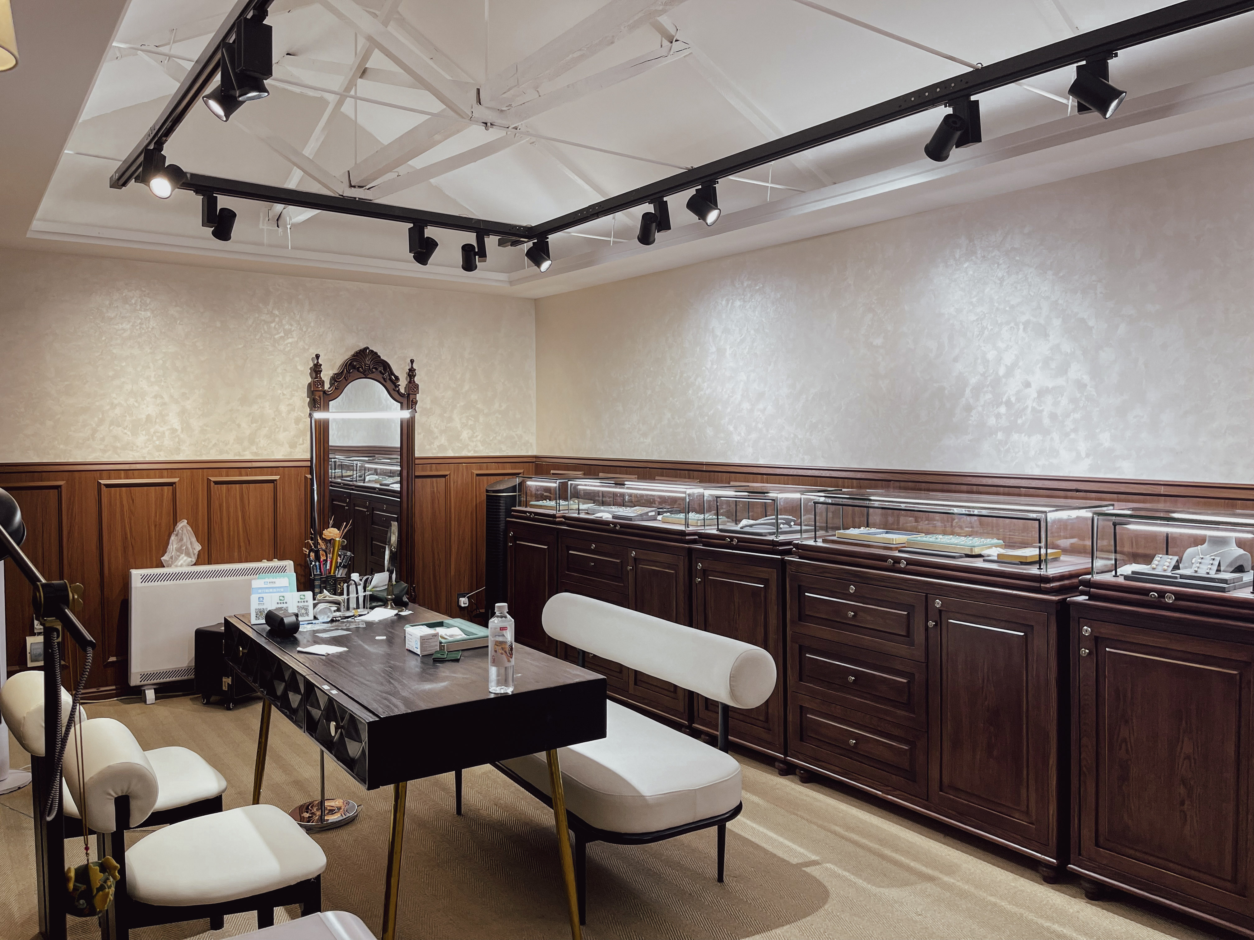 • 光影:天窗引入自然光,配合暖调灯光,让珠宝更璀璨